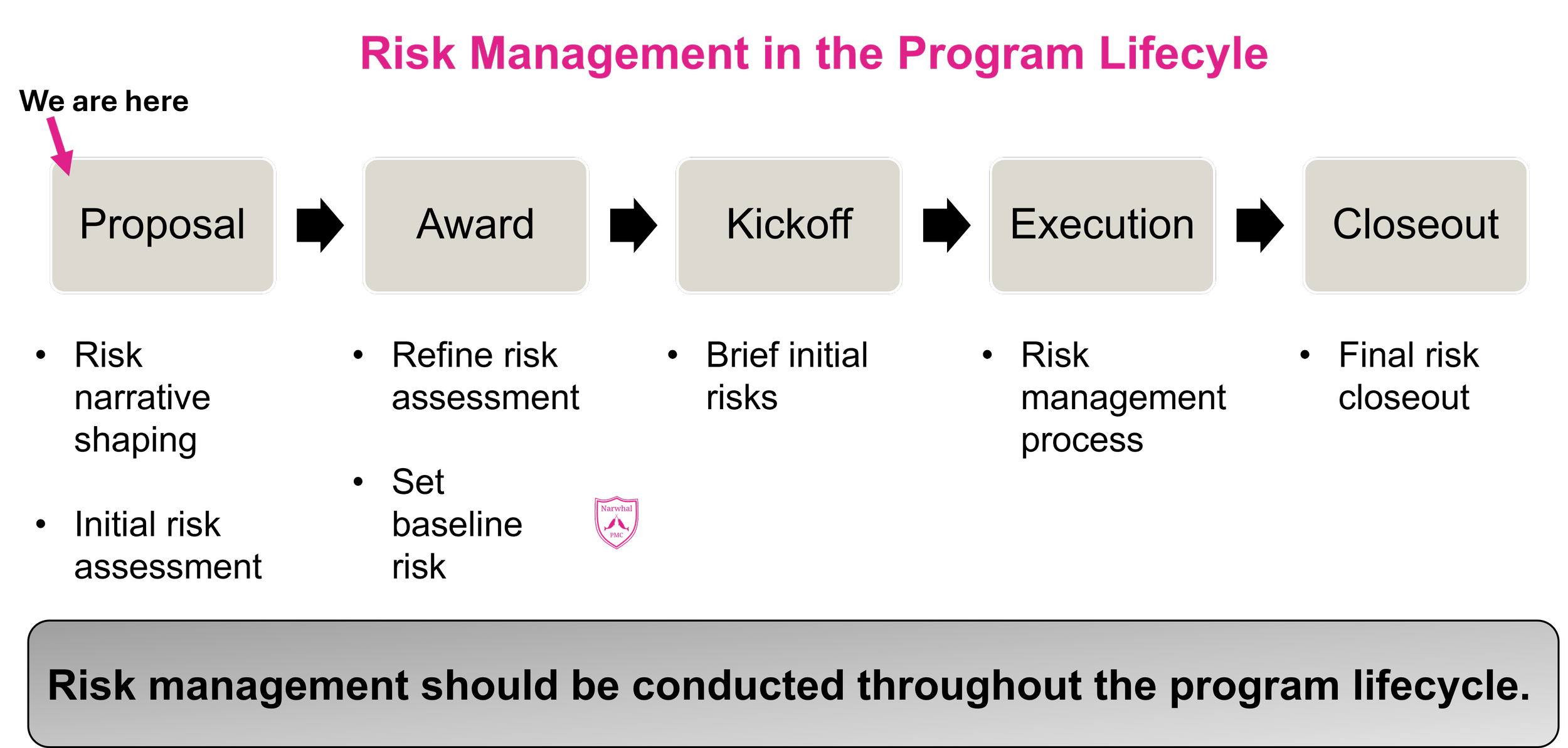 If you work in government contracting and you aren’t talking about risk management in your proposal, you’re missing a critical opportunity to get ahead of your competitors. Risk management should be conducted throughout the program lifecycle, starting with the proposal.